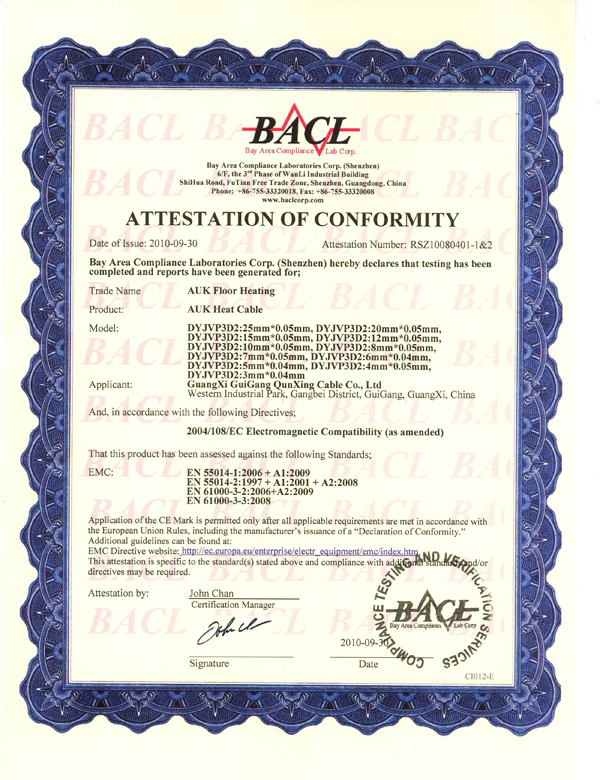 首頁 > 關(guān)于我們 >質(zhì)量認(rèn)證 >EMC 證書