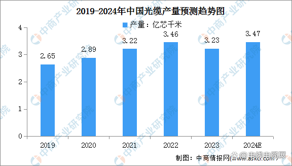 光纜是利用置于包覆護(hù)套中的一根或多根光纖作為傳輸媒質(zhì)并可以單獨(dú)或成組使用的通信線纜組件。中商產(chǎn)業(yè)研究院發(fā)布的《2024-2029年中國(guó)光纖光纜產(chǎn)業(yè)需求預(yù)測(cè)及發(fā)展趨勢(shì)前瞻報(bào)告》顯示,2023年全國(guó)光纜產(chǎn)量為3.23億芯千米,同比下降6.7%。中商產(chǎn)業(yè)研究院分析師預(yù)測(cè),2024年全國(guó)光纜產(chǎn)量有望進(jìn)一步增至3.47億芯千米。