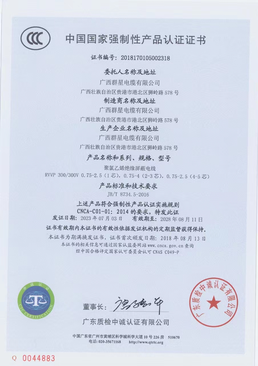 首頁 > 關于我們 >質量認證 >聚氯乙烯絕緣屏蔽電線3C認證RVVP