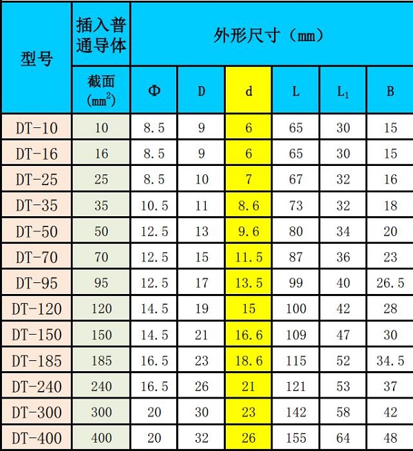 國標異型銅導體-選擇國標DT銅接線端子(參考)