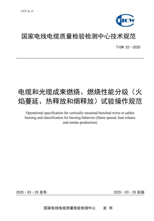 MORE>>國纜檢測發布電纜和光纜成束燃燒(熱釋放、煙釋放)性能試驗操作規范